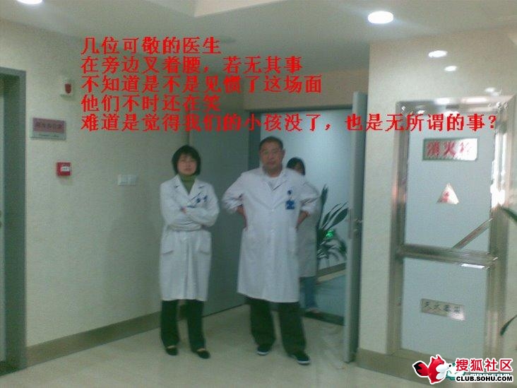 孩子就這么走了,能醫(yī)卻不醫(yī),只因?yàn)橐嬗螒?、要睡覺的醫(yī)生而耽誤了醫(yī)治時(shí)間,有誰不會去聲討他的無德?事到如今,只能說這位醫(yī)生不僅沒有醫(yī)德,也沒有道德,更可悲的是他連起碼的人格都沒有。當(dāng)然,喪盡天良的不光是那位推卸自己不是眼科而是五官科的值班醫(yī)生,最重要的是也包括那些南京市兒童醫(yī)院行政樓里的醫(yī)院院長、醫(yī)生、保安、護(hù)衛(wèi),甚至也包括駐守在醫(yī)院門口的警務(wù)處民警們。