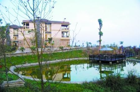 被媒體曝光的文強的“雙子別墅”位于仙女山鎮(zhèn)石梁子村黃家灣,占地近二十畝。兩棟雅黃色的西班牙殖民式別墅位于那片風景區(qū)制高點,都是三層樓,外觀一致,高高的煙囪顯示別墅里都有歐式壁爐,一樓外墻由深黃色的名貴石材造成,四周栽種了不少熱帶樹木;二樓和三樓都有超大露臺,正好可以在這個制高點用于遠望連綿起伏的遠山。別墅外建有人工小湖,湖邊的草坪有整潔的小徑可以散步,更有木質(zhì)的親水回廊一直延伸到湖中央。整個別墅區(qū)被柵欄包圍,朝里望去,花木、涼亭、水榭一應(yīng)俱全。