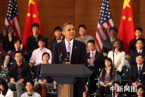 > 美國總統(tǒng)奧巴馬在上海與中國青年對話
