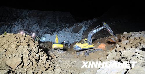 記者在現(xiàn)場(chǎng)看到,其他山頭均被白雪掩埋,滿眼白色,只有塌方處是黃土。在消防部門的應(yīng)急照明燈的照射下,4臺(tái)大型挖掘機(jī)正在作業(yè),挖出的土方中不時(shí)有衣服、枕頭和磚瓦等房屋碎片。由于溫度低,塌方處都是已經(jīng)結(jié)冰的大土塊。